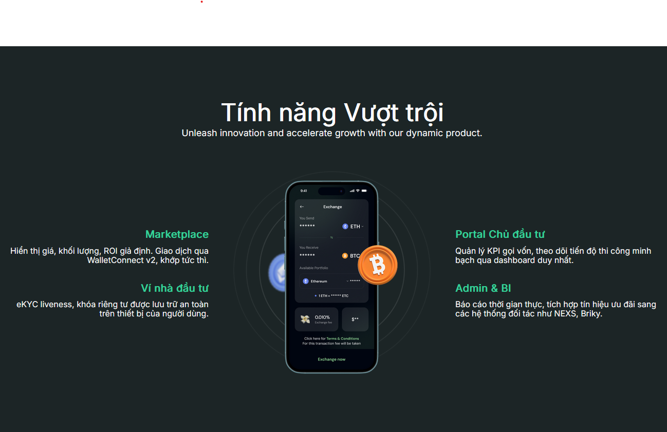 Trở thành nền tảng công nghệ hàng đầu tại Việt Nam kiến tạo hệ sinh thái tài chính số minh bạch - hiệu quả - đa tiện ích, giúp mọi người đều có thể đầu tư vào tài sản thực thông qua Blockchain, NFT và DAO.
